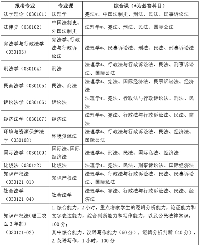 1.法学硕士(笔试成绩以专业课、综合课两科的平均分计算,满分100分)