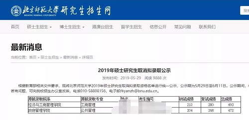 【中国人民大学在职研究生网讯】近日,北京师范大学取消了两名考生的拟录取,虽然具体原因没说,但无非有以下几种原因:1. 政审不过关;2. 资格审查不过关;3. 考研复试成绩核算错误;4. 体检不合格者不予录取;5. 重大违纪行为或其它;6. 由于某原因主动放弃读研。