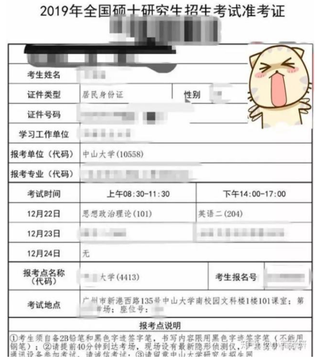 以下是2019考研准考证,其中“考试地点”那一栏就写着具体的考试地点。